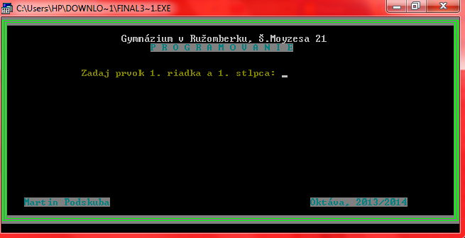 Program Final 3 slúži na vykreslenie matice s 3 riadkami a 4 stĺpcami s ktorými sa dajú vykonávať operácie: Výmena riadkov, Násobenie riadkov a pripočítanie riadkou k inému riadku.